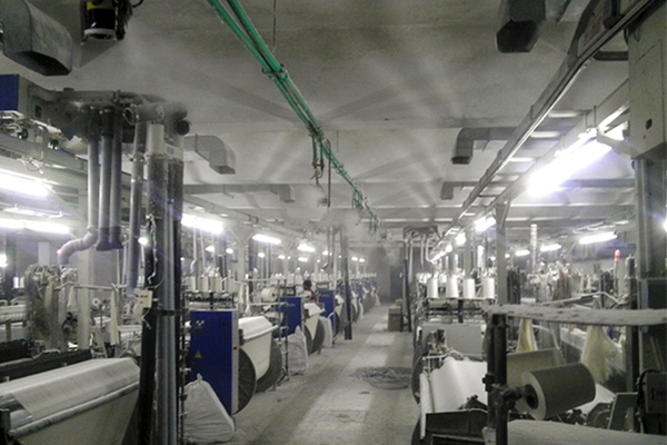 在纱线厂中,可以通过对整个工厂进行加湿或者直接在生产线上喷洒干雾进行加湿,来防止干燥导致的纱线断头,进而减少停机现象 。在无纺布工厂,它可以非常有效地防止出现裂痕、出现折痕等现象。