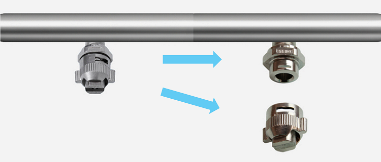左:底座部分+喷嘴部分|右:可仅拆装喷嘴部分,而将底座留在管道上