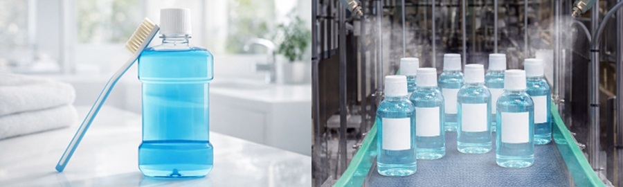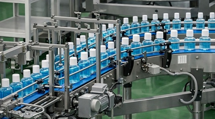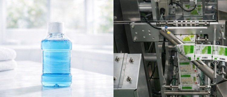 漱口水制造大致分为药液调配、瓶体灌装、包装、出货这几个工序。其中,包装工序承担着重要作用,包括对已灌装药液的瓶体进行收缩膜包装、贴标签、批次打印等,这些工序会直接影响消费者拿到产品时的初印象。