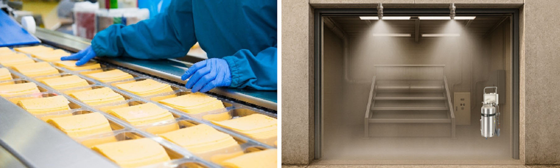 然而,在该装置处理过程中,废水中含有的乳脂肪和油脂成分直接与空气接触,产生了强烈的恶臭。不久,臭气扩散到工厂外,甚至引来了附近居民的投诉。虽然已知每5分钟喷洒一次除臭剂可取得一定效果,但工厂是24小时连续运营,依靠人力操作并不现实。因此,得益于客户在加工奶酪生产工序的加湿用途中已在使用我司2流体喷嘴的缘分,他们就除臭剂自动喷雾事宜向我们进行了咨询。