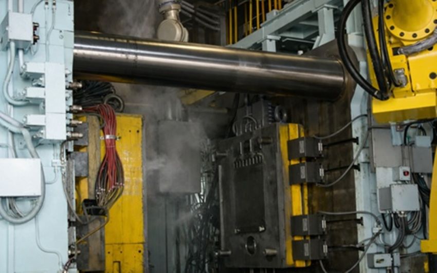 通常每压铸一次都会开模,每次喷涂脱模剂来抑制模具温度上升。但曲轴箱形状复杂,且存在厚壁部位,多种条件叠加时, 模具温度有时甚至会达到400℃ 。
