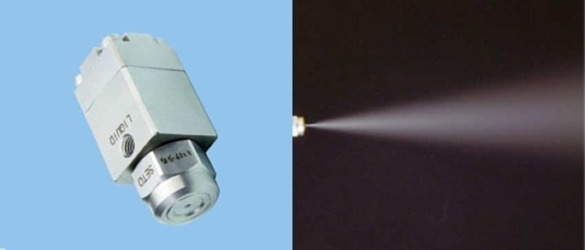 我司负责营业人员选用了可将冷却水与压缩空气混合、形成微细雾状喷射的二流体喷嘴「SETO‑SP」系列。与仅靠液压驱动的一流体喷嘴相比,该喷嘴可实现更小的液滴,因此能够抑制模具及周边被打湿的风险。